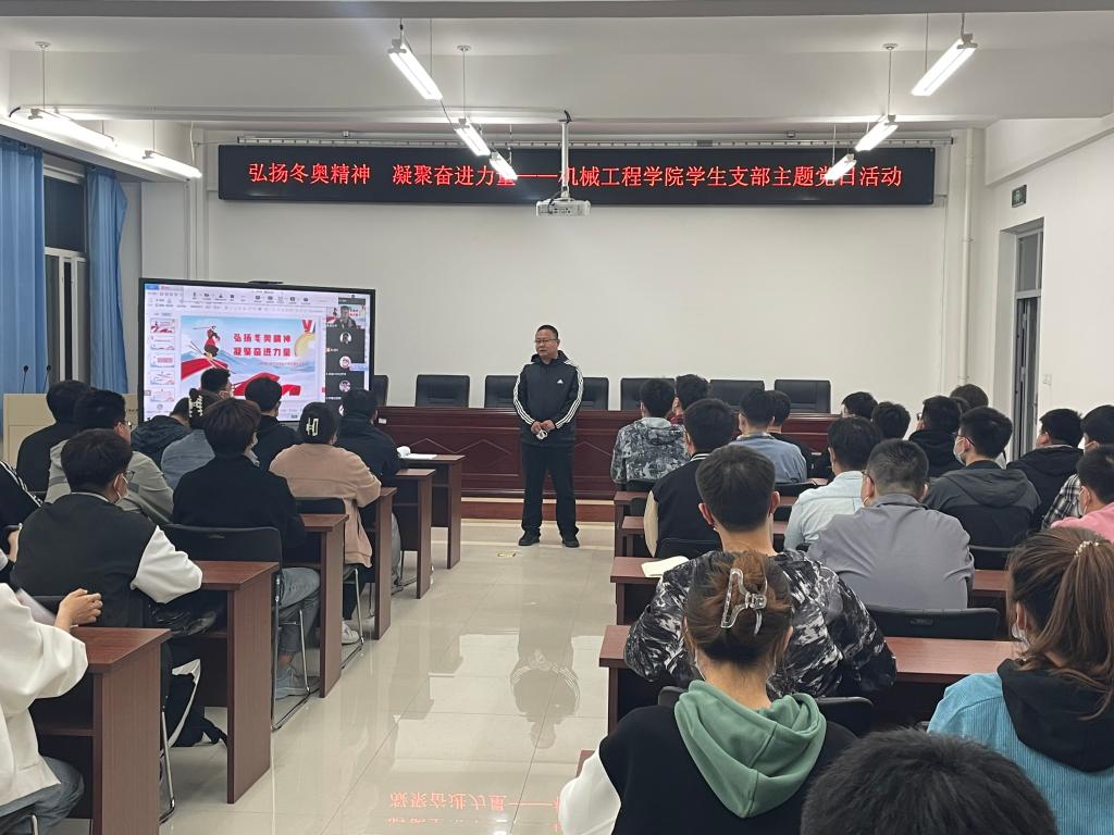 为深入学习领悟习近平总书记在北京冬奥会、冬残奥会总结表彰大会上的重要讲话精神,弘扬冬奥精神,4月19日晚,开云手机站登录入口三个学生支部在机械楼315联合开展“弘扬冬奥精神,凝聚奋进力量”的主题党日活动。学院党委副书记赵成刚、各学生支部书记以及全体党员参加了活动。本次活动采用线上+线下的方式开展,由学院专职组织员吴宏宇主持。