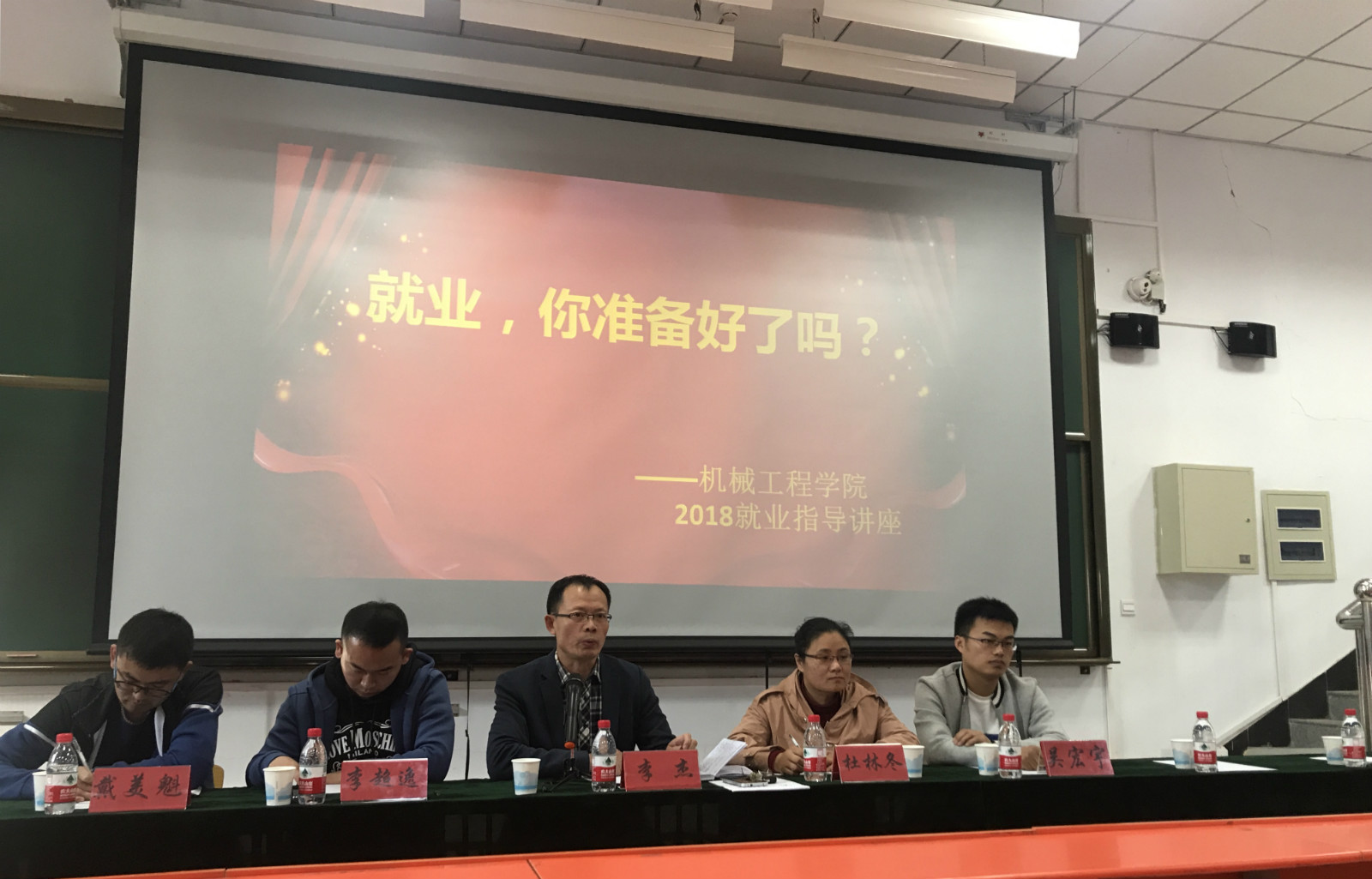 2018年10月12日下午,开云手机站登录入口在主教102举办了主题为“就业,你准备好了吗”的就业指导讲座。参加讲座的主要领导老师有党委书记李杰、辅导员杜林冬、李超逸、戴美魁、吴宏宇等学院领导老师。