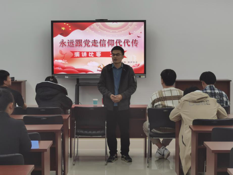 主持人介绍决赛规则后,选手们依次登台演讲,重温党的丰功伟绩,追忆革命峥嵘岁月。演讲结束后,梁煜对选手表现进行点评,吴宏宇老师进行总结,表示希望同学们能够将“永远跟党走,信仰代代传”的信念和决心内化于心,坚定道路自信、理论自信、制度自信、文化自信,争做党史学习教育的排头兵。