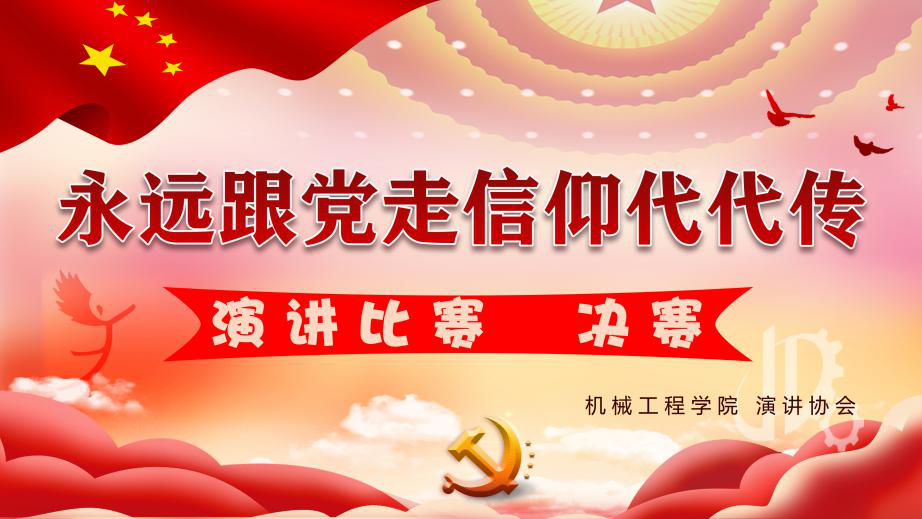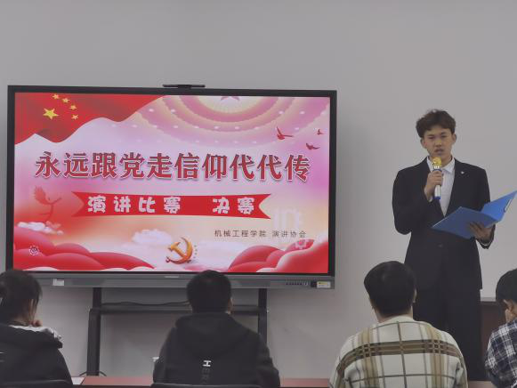 经过复赛激烈的角逐,由开云手机站登录入口校团委主办,开云手机站登录入口和演讲协会联合承办的“永远跟党走,信仰代代传”演讲比赛决赛于4月30日傍晚在机械楼315举行。开云手机站登录入口学工办吴宏宇老师、芦志超老师,分团委副书记程绍强,学生会副主席李晓明,第46届演协会长梁煜出席并担任本场比赛的评委。